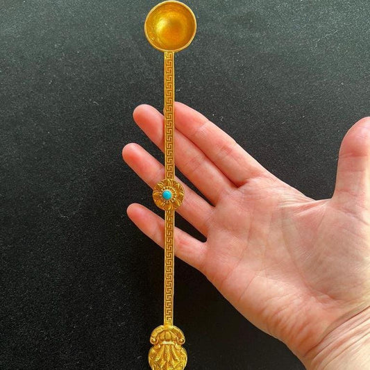 Buddhist Incense Powder Offering Spoon | Smoke Offering | Gold Colored Metal | Approx. 9 inches long | Sang