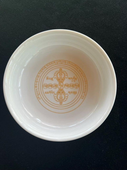 Ceramic Sang Offering Bowl | White with Gold Metallic Takdröl| Incense Burner | 6 inch Diameter