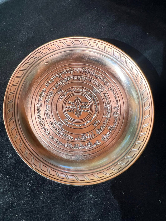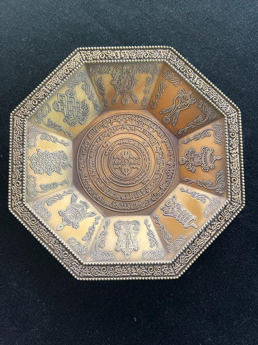 Brass Sang Offering Plate | With Engraved Takdröl and Eight Auspicious Symbols | Incense Burner | Approx. 6 1/2 inch Diameter