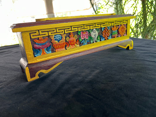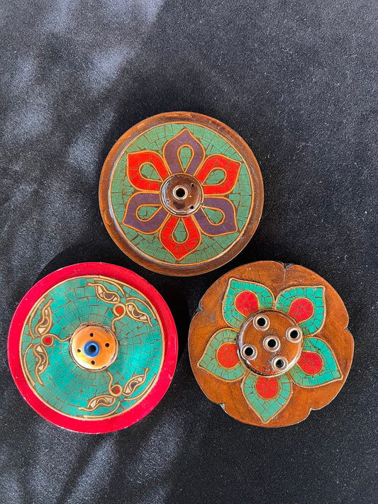 Porta incienso de madera con incrustaciones | 1 soporte de madera con incrustaciones de piedra | Incienso no incluido | 5 hoyos | Nepal | Diseños variados