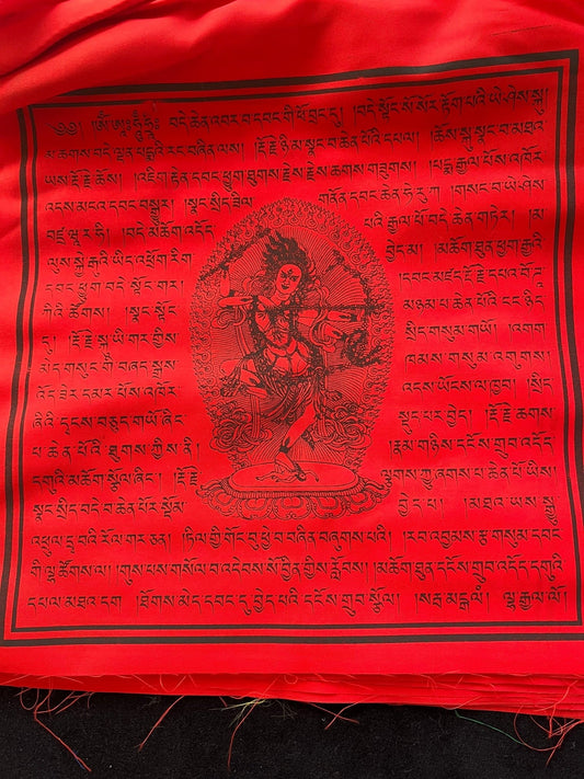 Huge Kurukulle TRIPLE Prayer Flag Banner |Great Cloud of Blessings| 28in x 60in | 1 single flag | Poly Silk | vertical flag | Wangdü Soldep