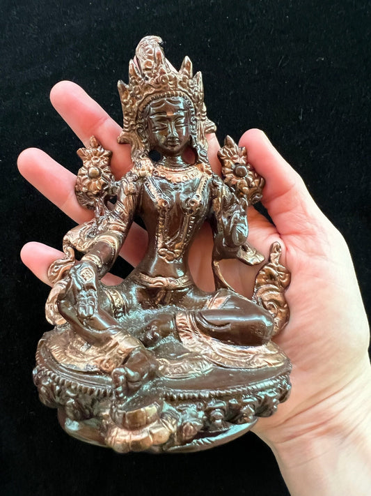 Medium Green Tara Statue | Brass | Handmade | 6 inches | Dolma | India