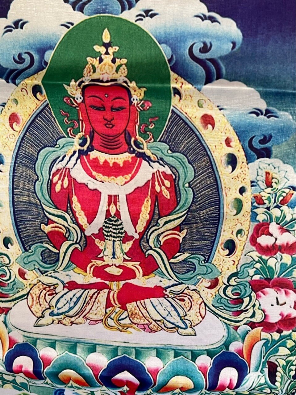 Huge Amitayus Prayer Flag Banner |Tibetan Prayer Flags | 27in x 36in | 1 single flag | Poly Silk | vertical flag or wall | Tsepamé