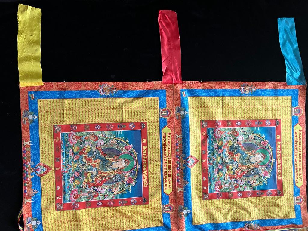 Huge Guru Rinpoche Double Panel Prayer Flag Banner | 28in x 50 1/2in | 1 single flag | Poly Silk | vertical flag or wall
