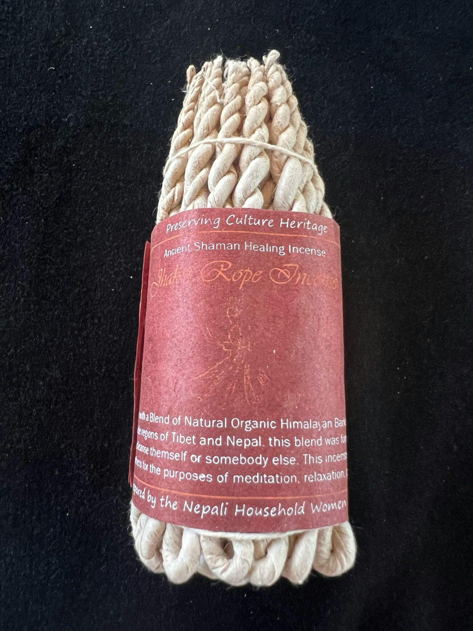JhakriNepali Rope Incense is made with a blend of natural Himalayan barks, spices and various aromatic herbs found in high altitudes of Nepal and hand rolled in lokta paper. This blend was formulated by shamans (Jhakri) in Nepal, Spices and various aromatic herbs found in the high altitude regions of Tibet and Nepal. It can be used for the purposes of meditation, relaxation, purification and offerings. This incense has a relaxing scent and is made from all natural products following original Ayurvedic formulations from Newar.