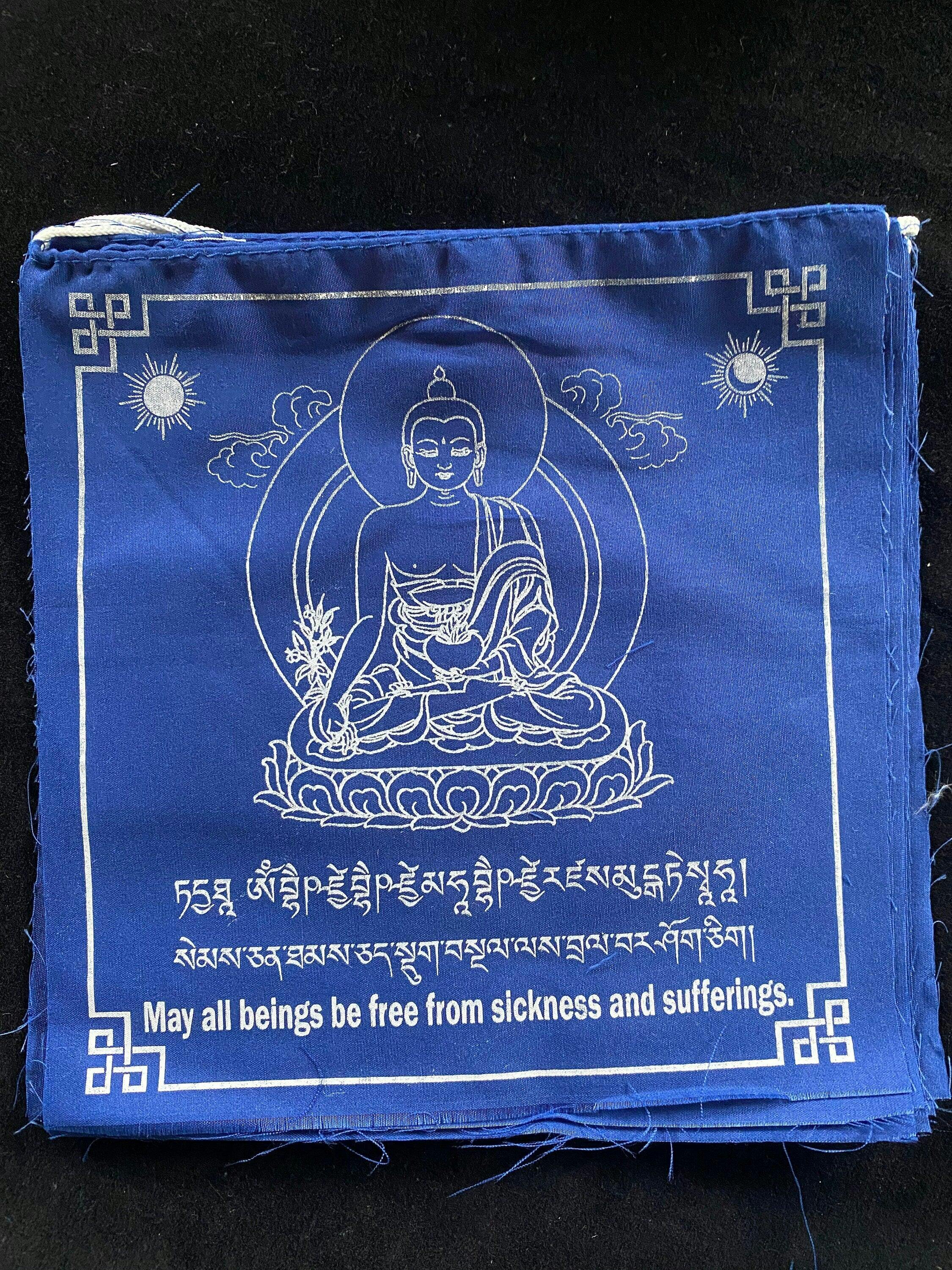Medicine Buddha Prayer Flags | Tibetan Prayer Flags | 8in x 8in | 1 set of 10 flags | All Blue