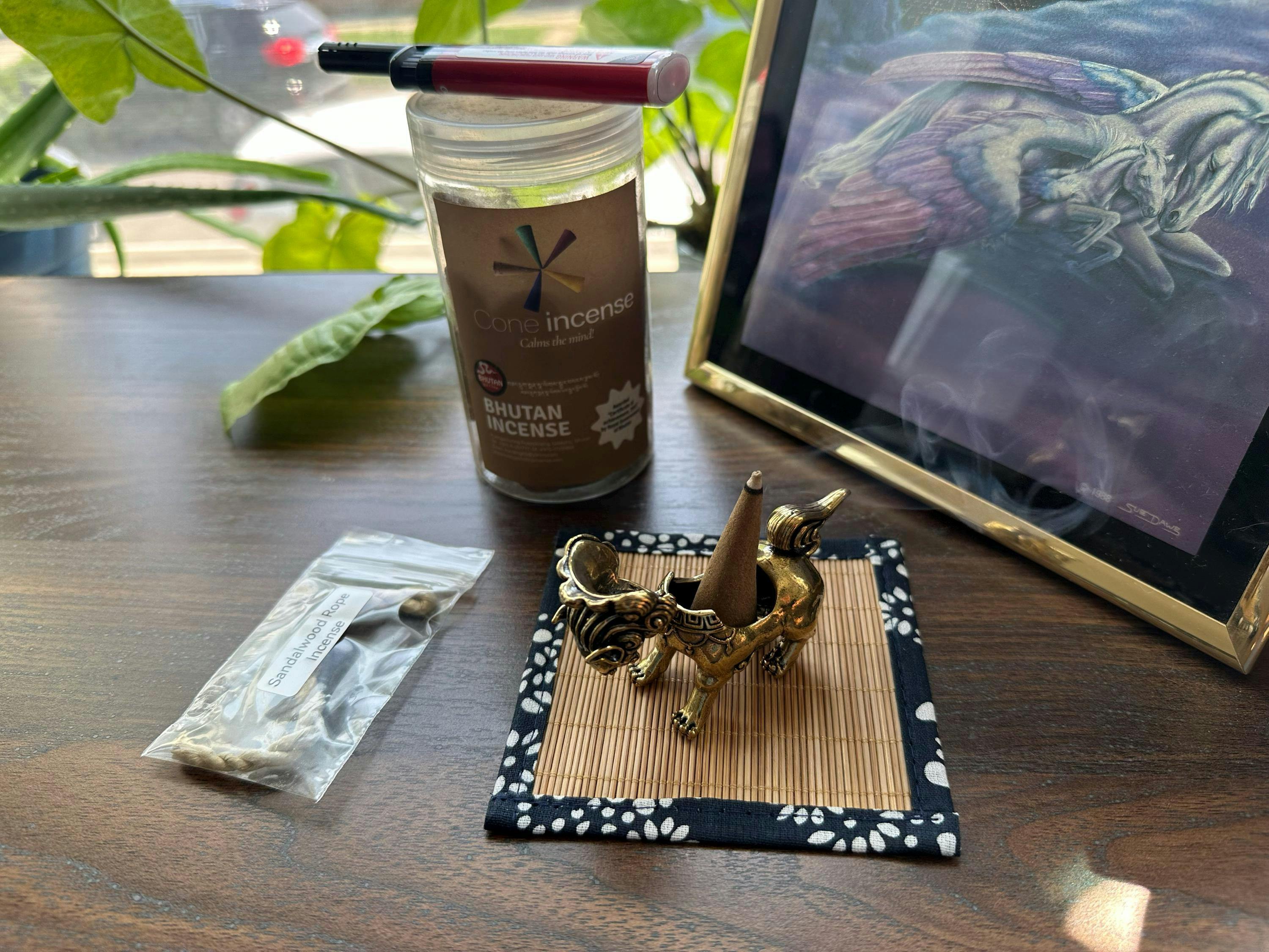 Tiny Snow Lion Incense Burner | Approx. 2.5 inches wide x 2 inches high | Brass
