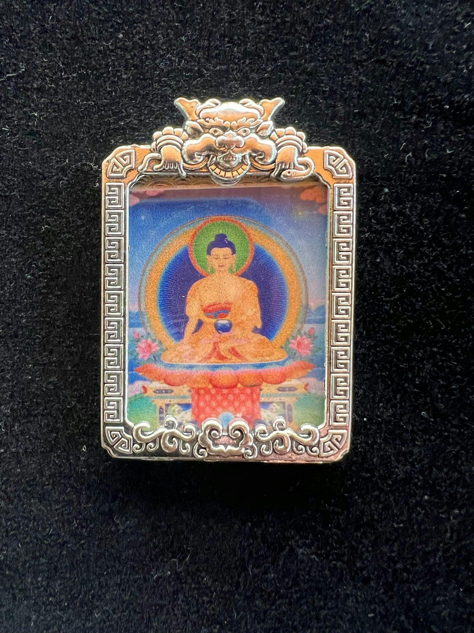 Tiny Thangka Buddha Shakyamuni Locket Pendant | Approx 1.5 in by 2 in | Nepal | Gau
